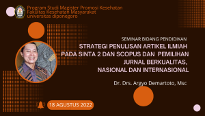 Kamis (19/8). Sebagai upaya meningkatkan kemampuan mahasiswa Magister Promosi Kesehatan dalam menulis artikel ilmiah untuk publikasi pada Jurnal Nasional Terakreditasi maupun Jurnal Internasional Bereputasi maka