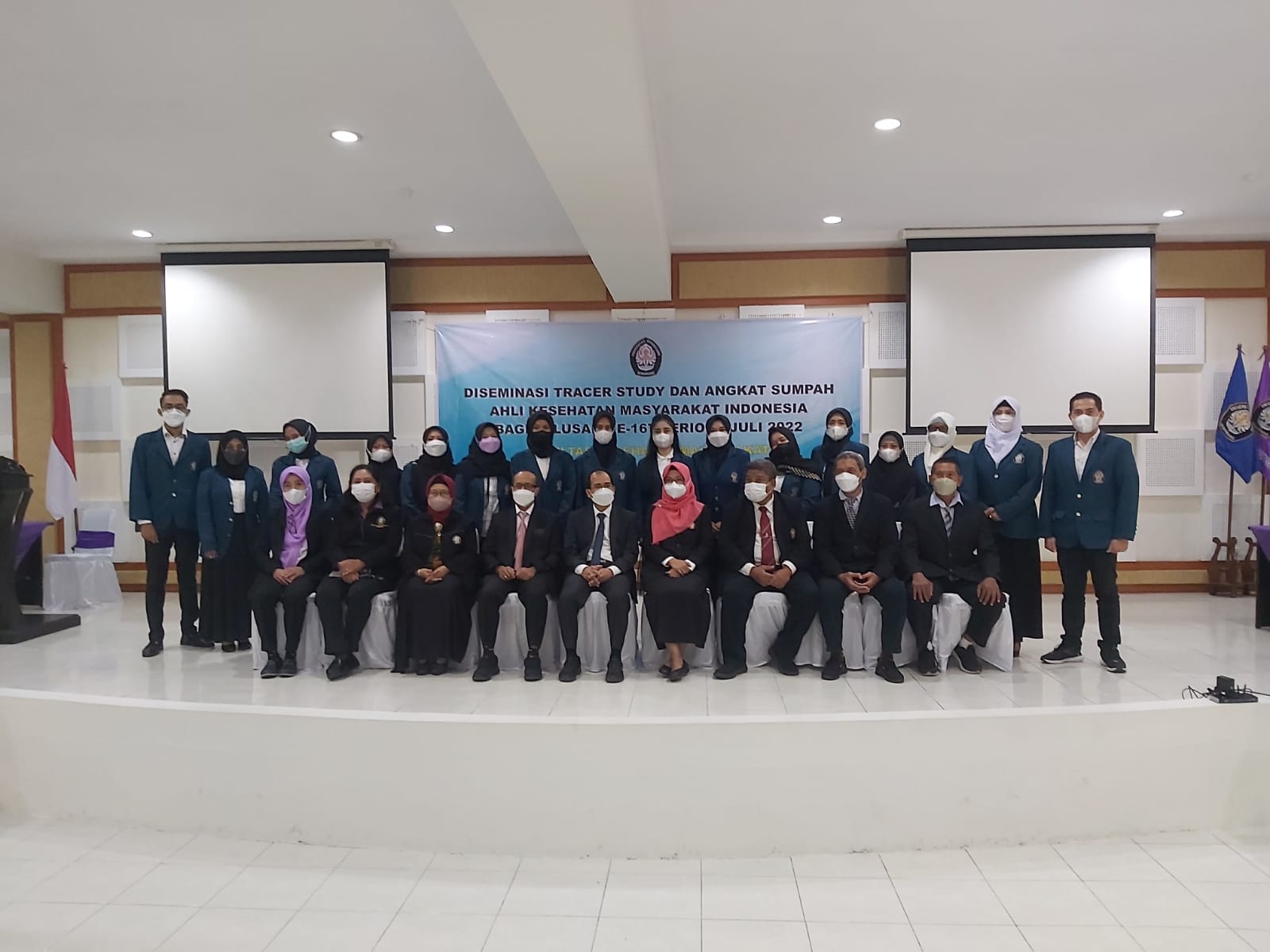 Kamis, 28 Juli 2022, Sosialisasi Tracer Study dan Sumpah Ahli Kesehatan Masyarakat Indonesia ke-167 Mahasiswa dilaksanakan di Hall Budiolo Brotosaputro, M.PH. Sebanyak 161 alumni FKM UNDIP dengan gelar sarjana, magister, dan doktor mengikuti kegiatan ini.